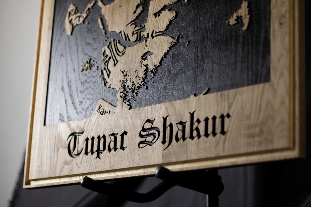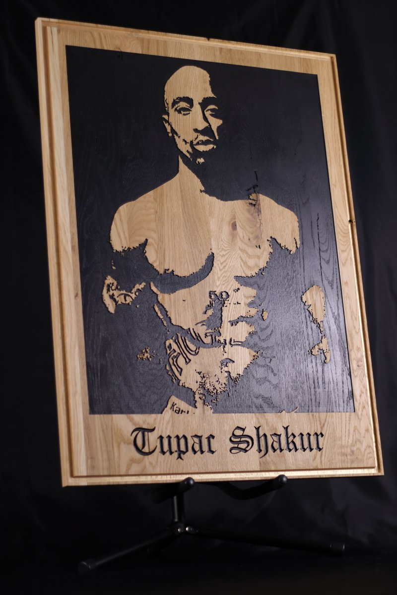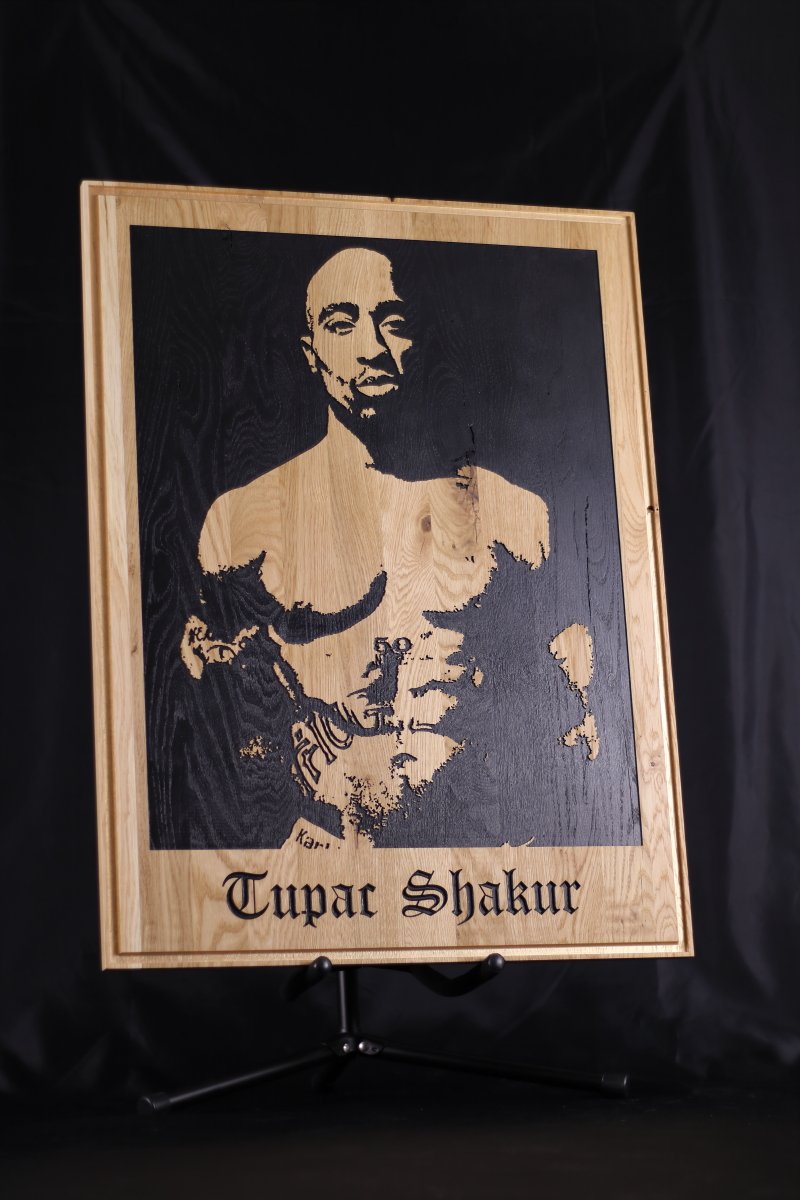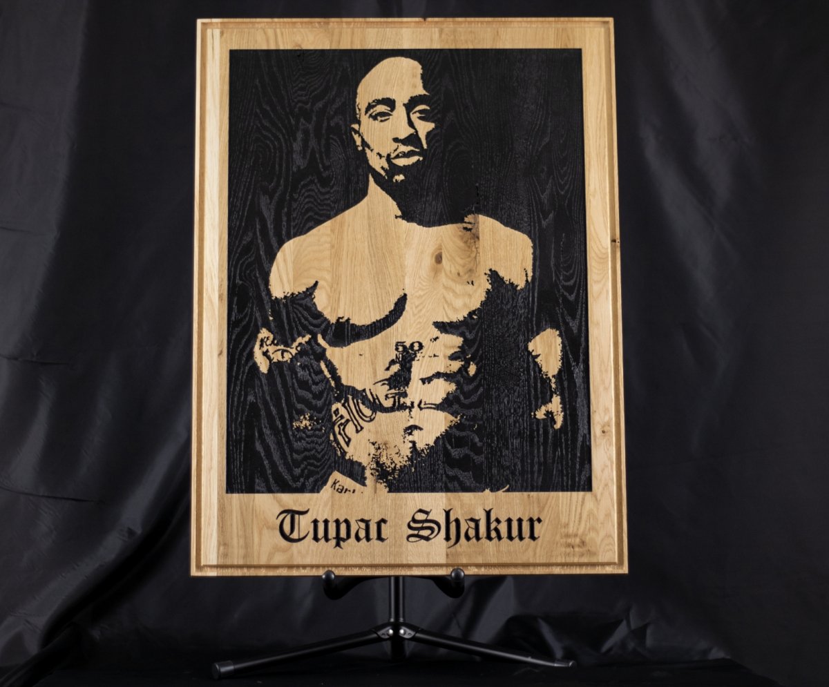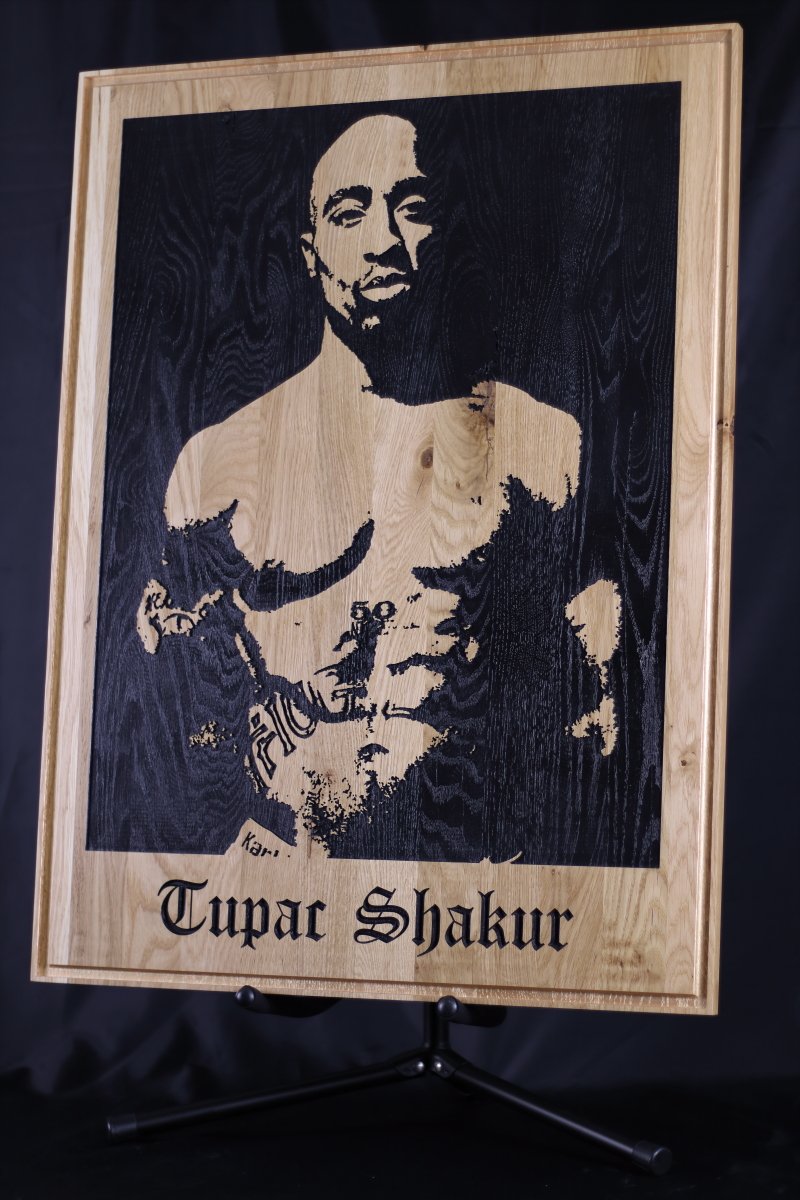 Poëet. Strijder. Legende. Tupac Shakur leeft voort in de harten van miljoenen. Dit portret in eiken is een krachtige ode aan zijn geest, woorden en strijd. Voor wie geraakt is door zijn boodschap en de diepe lagen in zijn kunst begrijpt.